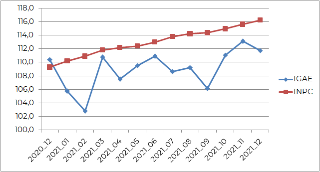 Pronóstico mensual de la inflación (INPC) y de la actividad económica (IGAE) durante 2021
